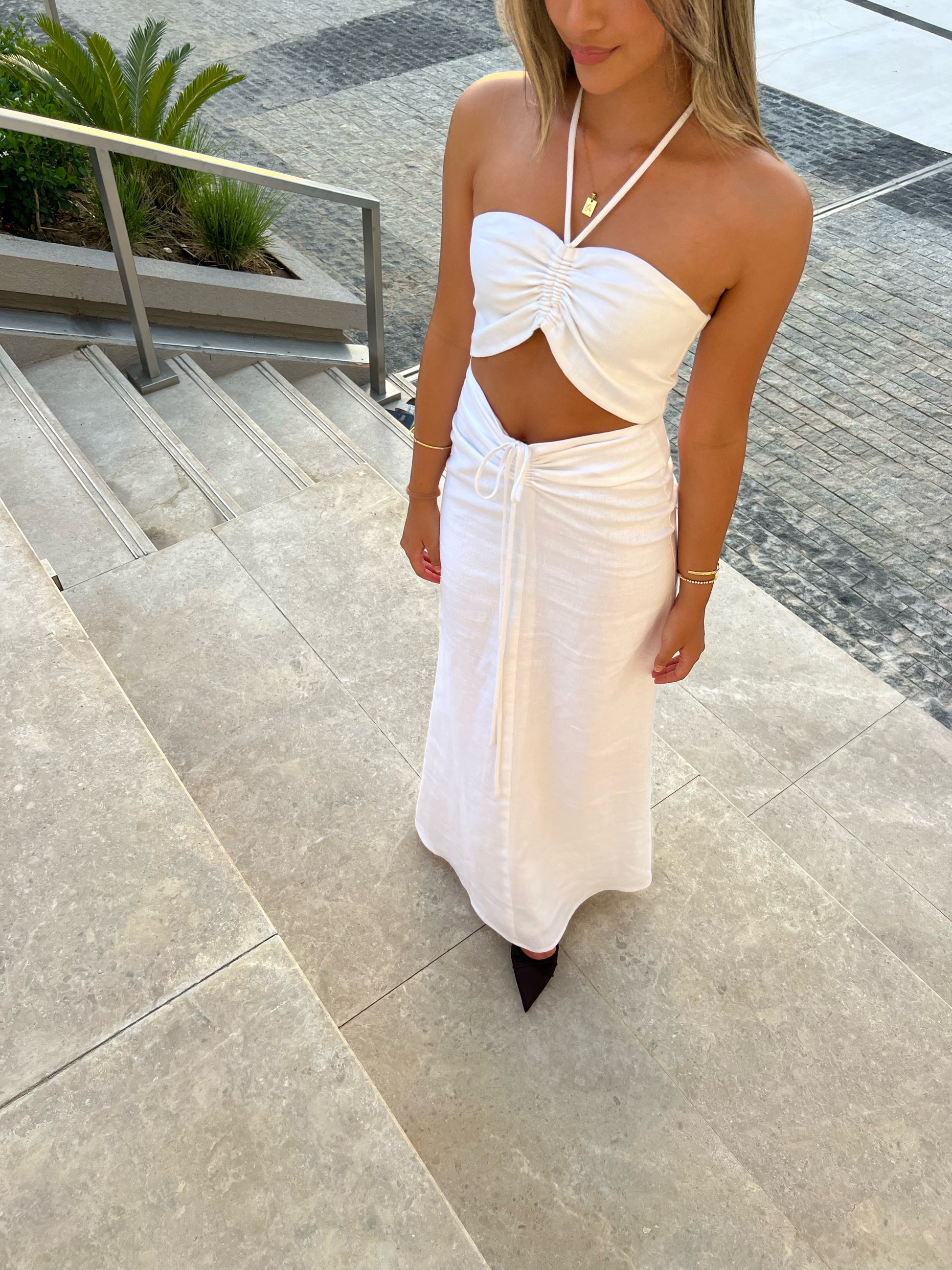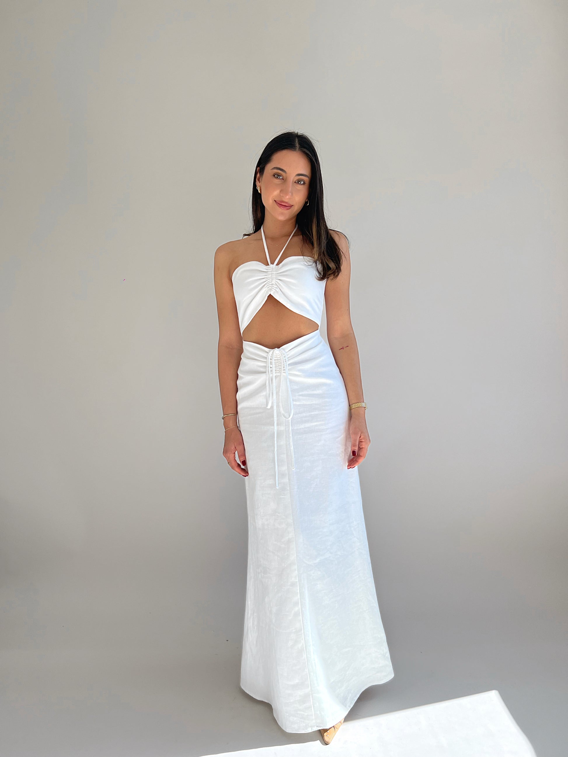 Ruched Maxi Dress White